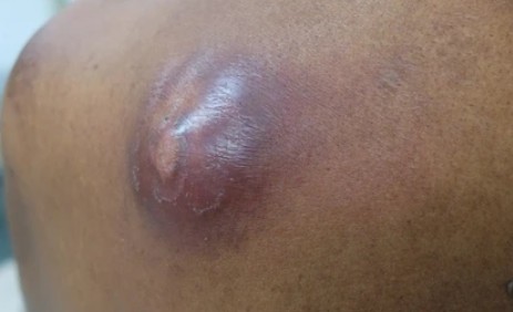 The skin over the lump often becomes red, swollen and warm. As pus builds up under pressure, the lump can feel tense and may increase in size quite quickly. In some cases, the skin may thin and eventually burst, releasing pus. Although this can temporarily relieve pressure, the infection may not fully clear without proper treatment.